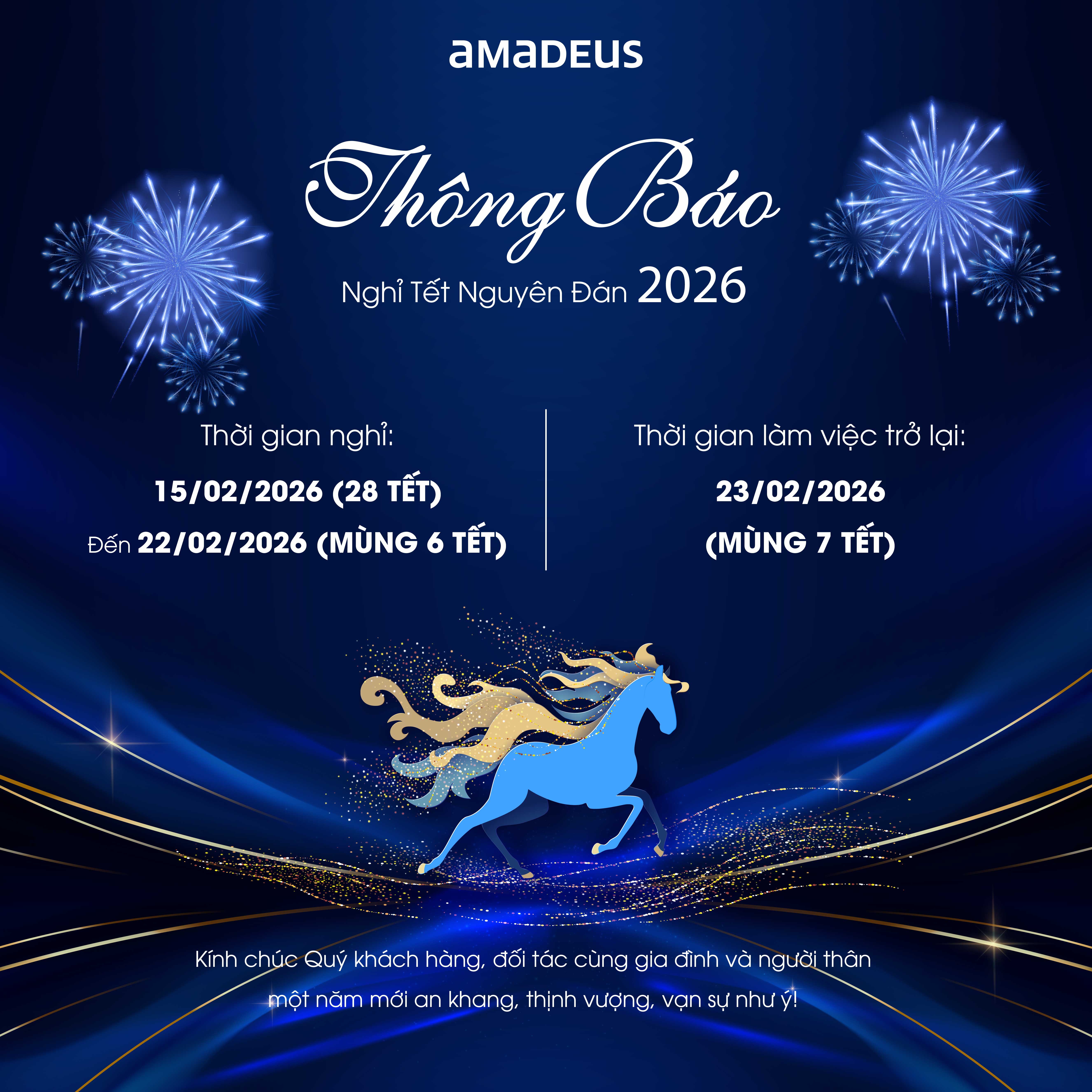 Amadeus Thông báo nghỉ Tết Nguyên Đán 2026 như sau: