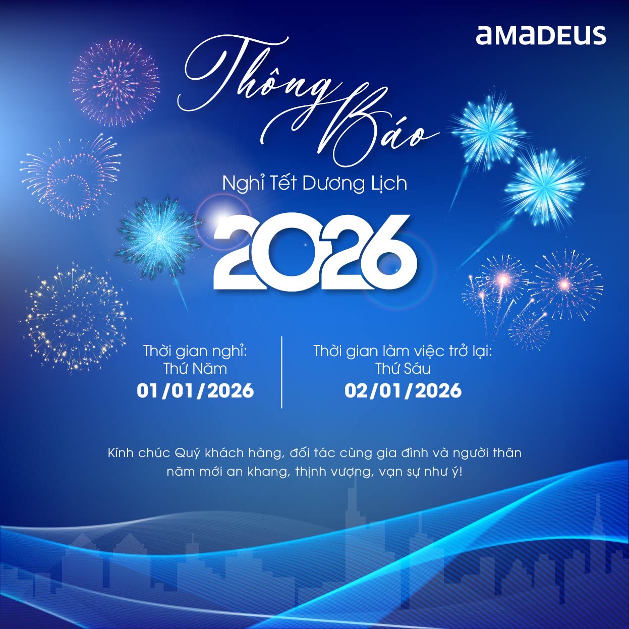 Amadeus Việt Nam xin thông báo lịch nghỉ Tết Dương Lịch 2026